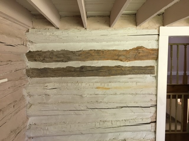 Paint. It’s cheap and it comes in every imaginable shade. On that note, I study the other, unviolated side of the logs on the back side of the living room.