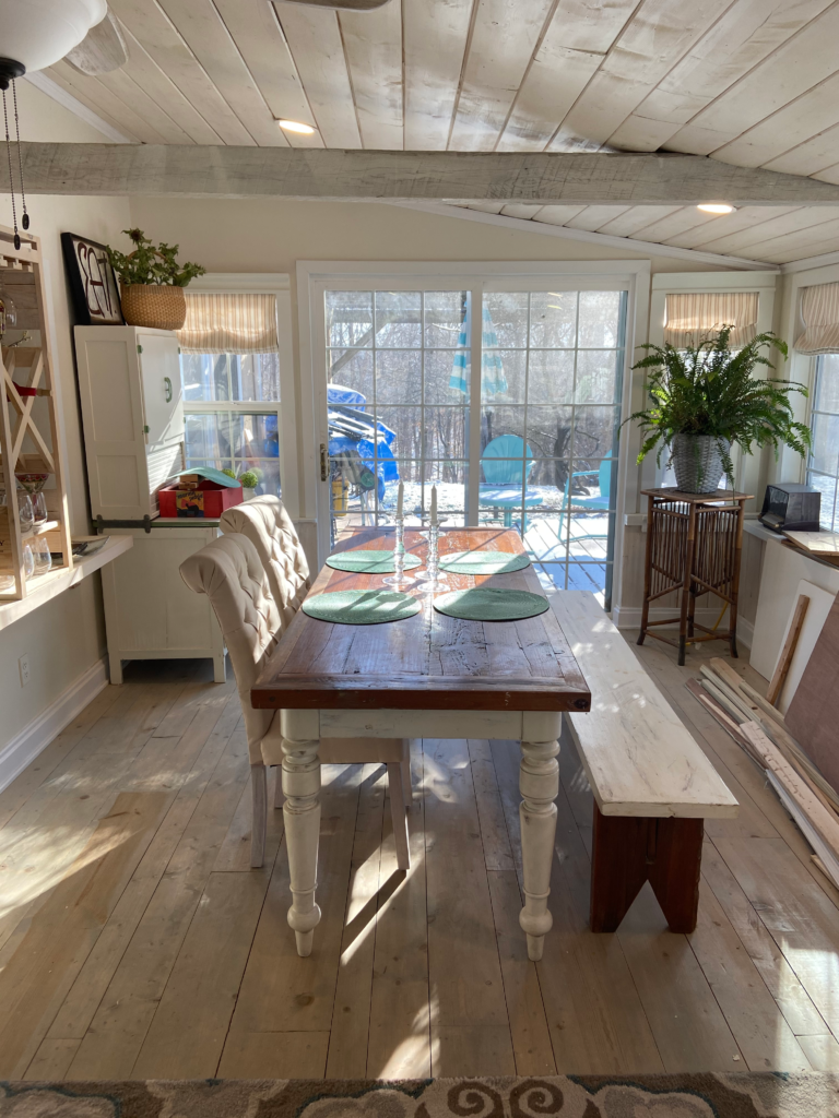 Yes! I built the table and bench. From reclaimed flooring in my former (married) home and turned legs, ala Ebay. Future post!