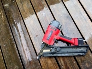 I was astounded to find this beast of a framing nailer at Menard’s for $69 bucks. Weighing in at 7 lbs., it’s an upper body workout. And sounds like a shotgun going off. But hey, it can drive a nail just fine, hooked up to the air compressor. Old school, but the price is right.